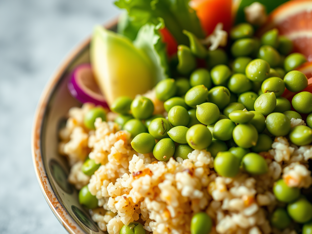 Quinoa is an ancient grain that is also a complete protein. Technically, it isn’t even a grain, but it’s still treated like one. What’s cool about it is that it doesn’t take as long to cook as other grains. Just make sure to rinse it before cooking, because it has a bitter coating that needs to be washed off. Adding edamame increases the fiber, and makes this meal high protein. If you make your bowl with 1/2 cup of dry quinoa, 1/2 cup frozen shelled edamame, and 1 cup mixed veggies, it would contain 24 grams of high quality protein, and plenty of fiber too!