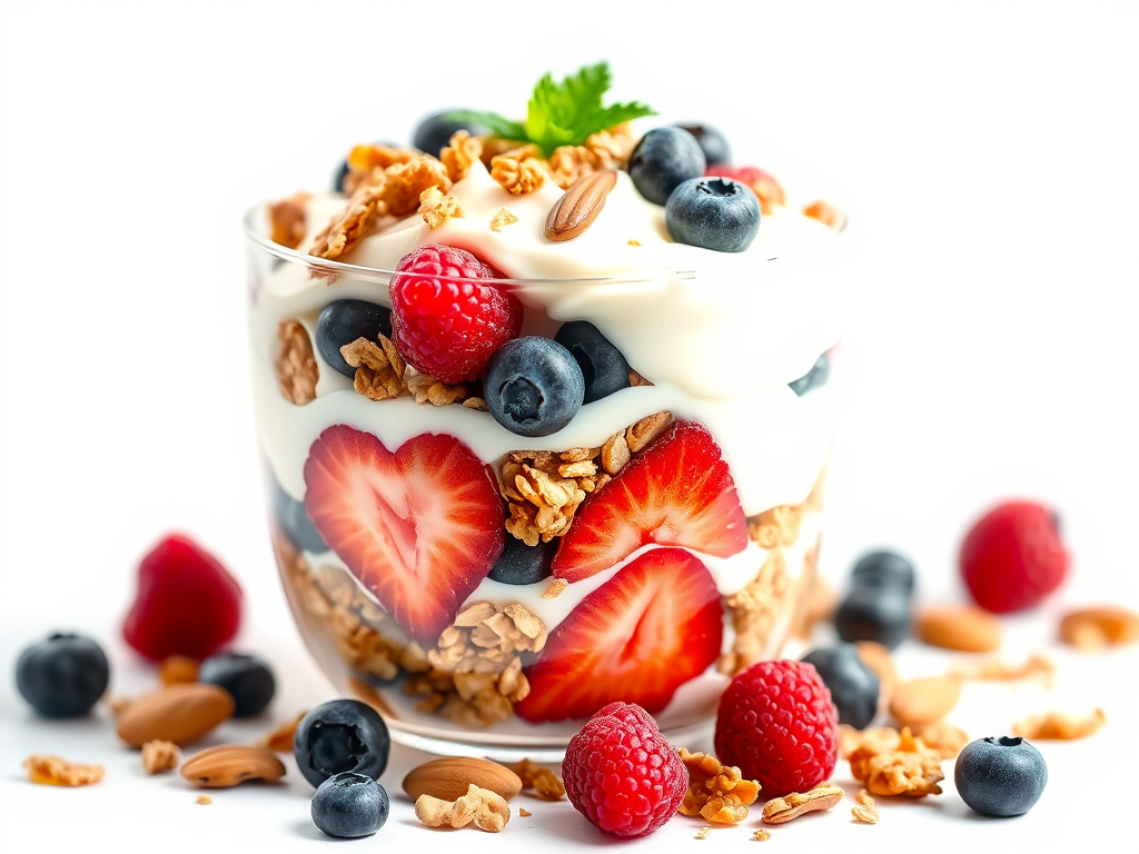 This is a super easy and healthy breakfast. You get complex carbs from the oats, and healthy fat and protein from the nuts. Just make sure you choose a brand of granola that is low in added sugars, or try making your own! If you make your parfait with 1 cup of nonfat Greek yogurt, 1/4 cup of almonds, and 1/2 cup of a protein granola, you’ll get 37 grams of protein.